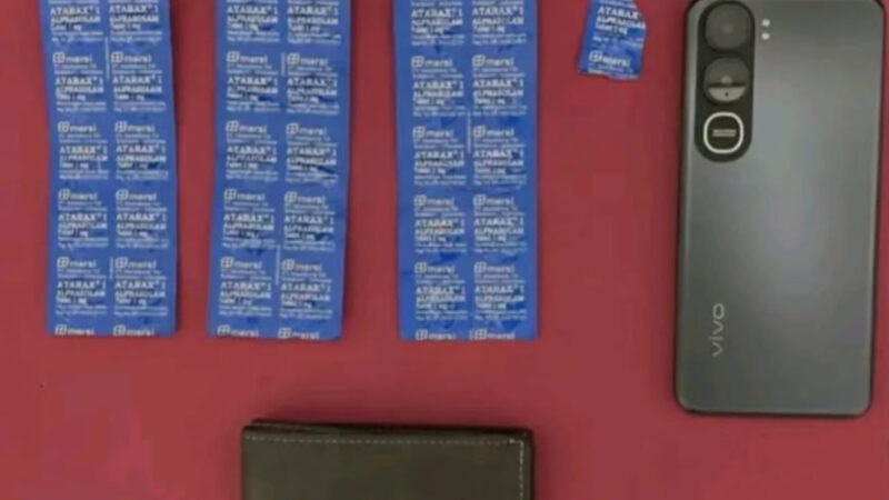 – Sebanyak 31 butir obat jenis Alprazolam yang masih dalam kemasan perak bertuliskan merek Atarax® 1 mg.