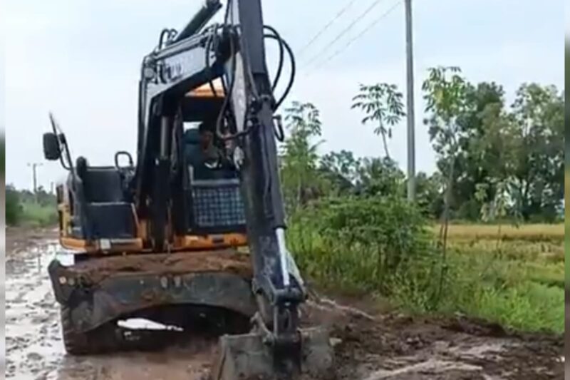Unit alat berat berupa excavator terlihat turun langsung ke lokasi dan mulai melakukan pekerjaan perataan serta penambalan jalan. Pekerjaan dilakukan dengan terlihat terburu-buru, seolah ingin segera menyelesaikan masalah dalam waktu singkat.