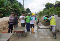 GOTONG ROYONG MEMBAHANA! Warga Sidorahayu Berswadaya Cor Jalan Rusak, Bhabinkamtibmas Turun Tangan